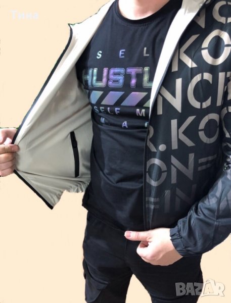 Страхотно двулицево пролетно яке , едното лице е изчистено , другото на актуалните за сезона надписи . Мека и много приятна микрофибърна материя , супер леко и удобно.