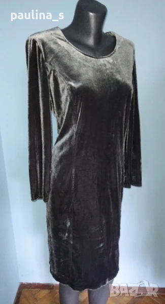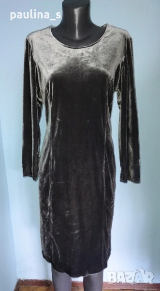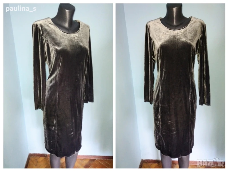 2️⃣. Колаж / L / 3XL - Сребриста рокля за повод / party dress по модел на Burda. Цената е крайна 39,99лв / 19,8 евро. Рокля за повод от еластичен плюшено кадифе, лична изработка по модел на Burda. Цветът е сребърен и се мени на светлината. Материята е еластична и покрива няколко номера. 42 / 44(за бюста) европейски стандарт. Само платът струва 4 пъти повече от посочената цена, без подлепващото, ципа и работата. Обличана е веднъж за Нова година.