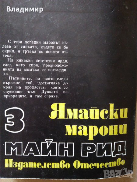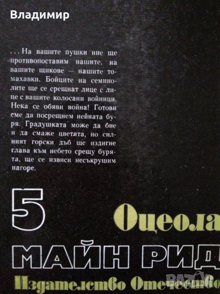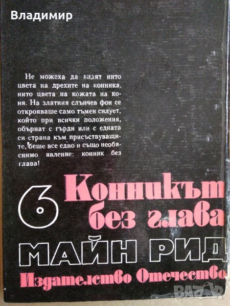 Продавам в много добър вид: Книги от поредицата "Избрани книги за деца и юноши" на Изд."Отечество" : 1."Капитан Немо" Жул Верн,1979 г. и 2."Скарамуш" Рафаело Сабатини,1980 г., както и поредица томове на Майн Рид, Изд."Отечество": Том 2 'Белият вожд" 1979 г.,твърди корици; Том 3 "Ямайски марони" 1980 г.; Том 4 "Пълзачи по скали" включващ и "Ловци на растения", 1980 г. , Том 5 "Оцеола" 1981 г. , твърди корици и Том 6 "Конникът без глава" 1981 г., твърди корици. Цената е 5 лева за всяка една книга.
