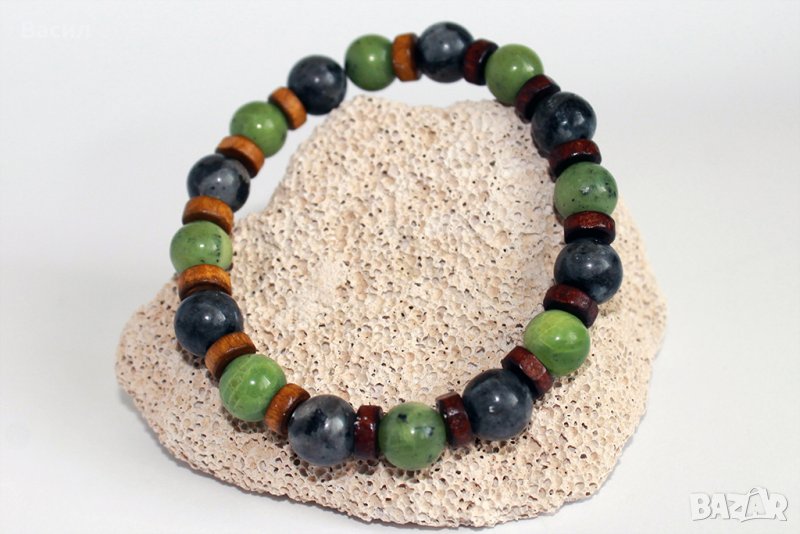 Ръчно изработена гривна от полускъпоценни камъни (Нефрит и Лабрадорит)