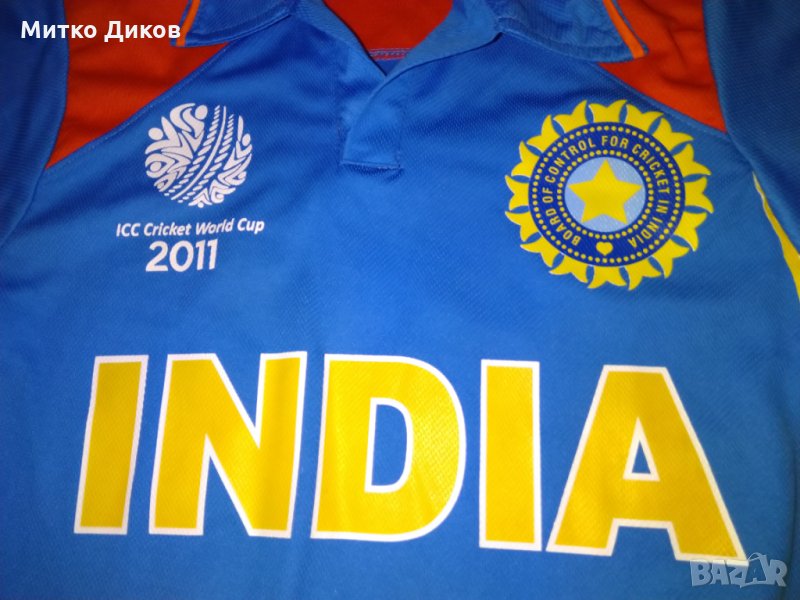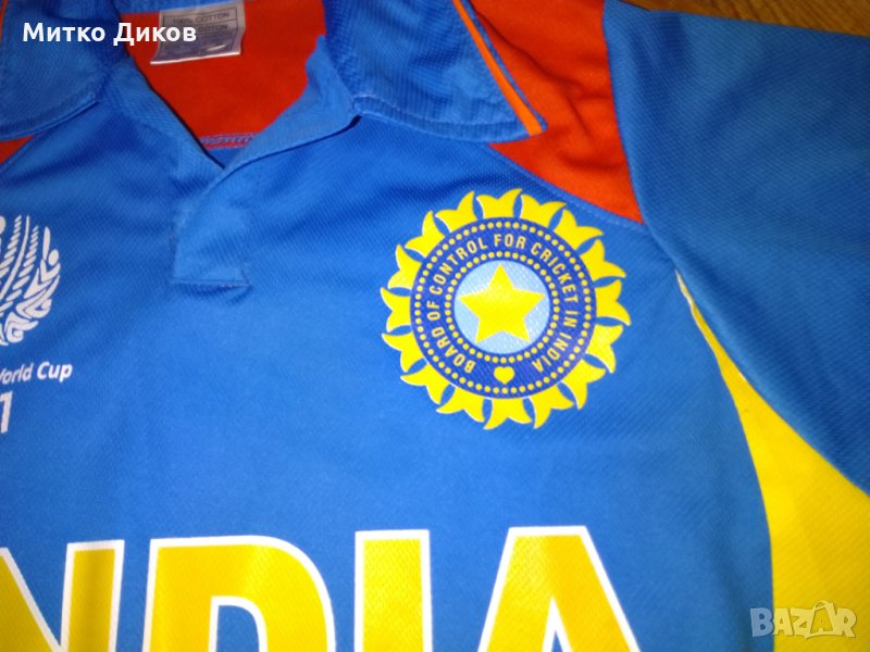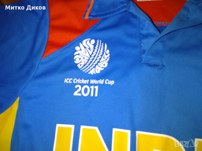 Индия тениска крикет №10 -2011 година световна купа размер ХЛ по етикет -реално е М-отгоре додолу-69см и подмишници-51см-в много добро състояние-изпращам по еконт с отстъпка