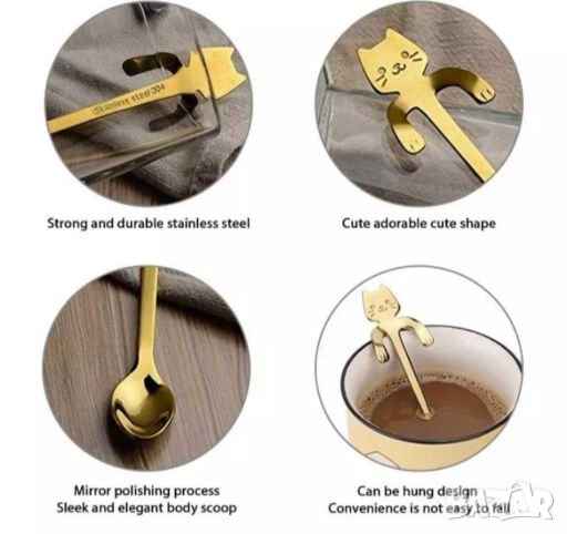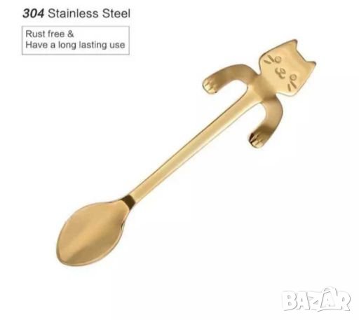 Неръждаема стомана Кафе и чаена лъжичка Сладка мини котка Дълга дръжка Лъжица за пиене Инструменти за кухненски приспособления