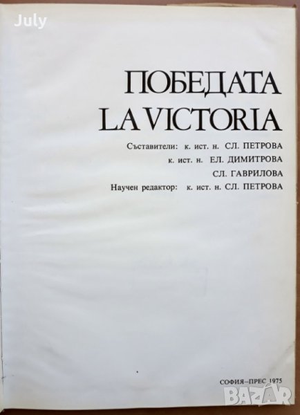 Победата, La victoria, Сл. Петрова, Ел. Димитрова, Сл. Гаврилова, София -Прес 1975 година, твърди корици с обложка, 176 страници с 303 снимки от въстаническа оперативна зона: София, Пловдив, Пазарджик, Благоевград, Стара Загора, Ямбол, Габрово, Шумен, Варна, Плевен и Враца, с превод на текста на испански език, формат 21 см х 29 см