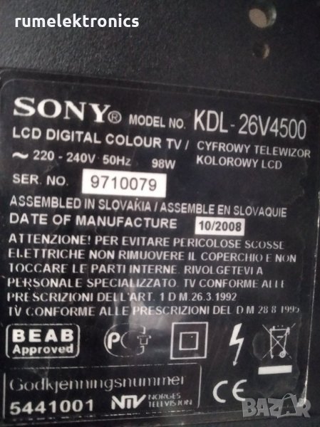 SONY KDL-26V4500 на части, снимка 1 - Части и Платки - 28013641 SONY KDL-26V4500 на части, снимка 2 - Части и Платки - 28013641 SONY KDL-26V4500 на части, снимка 3 - Части и Платки - 28013641 SONY KDL-26V4500 на части, снимка 4 - Части и Платки - 28013641 SONY KDL-26V4500 на части, снимка 5 - Части и Платки - 28013641 SONY KDL-26V4500 на части, снимка 6 - Части и Платки - 28013641 1/6