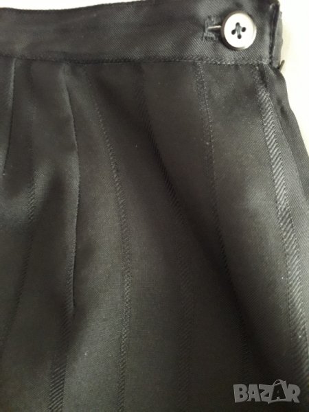 Черна пола от по-плътна материя, с вертикална нишка също черна, има подплата, отстрани се закопчава с цип и копче на колана, отзад с прихлупена цепка. Полата е права, надолу леко разкроена. Размер