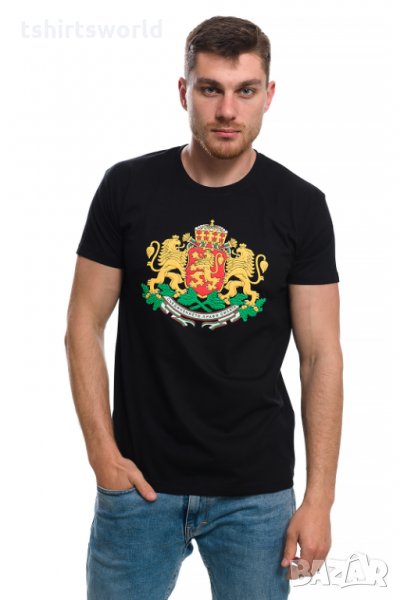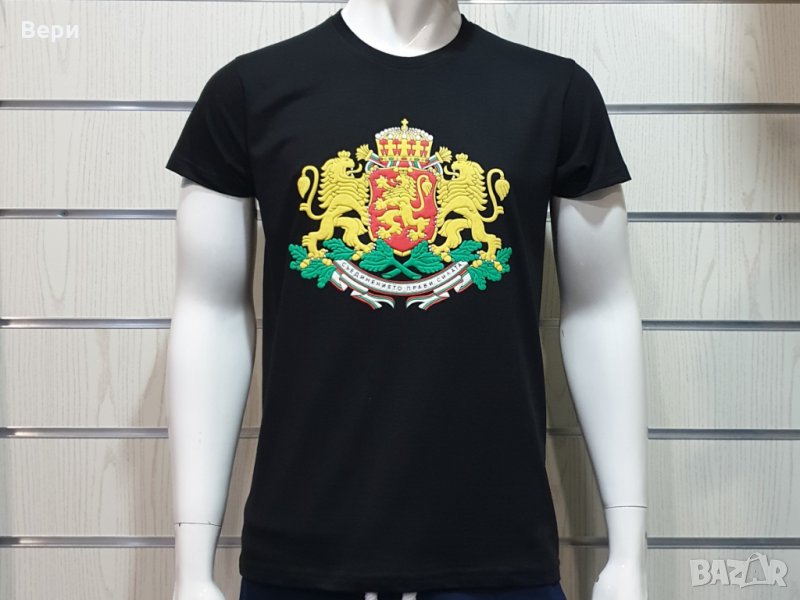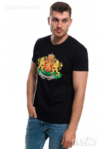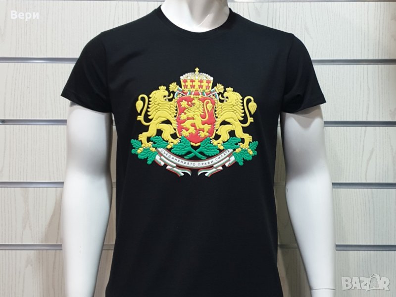 Нова мъжка черна тениска с релефен трансферен печат Герб на България