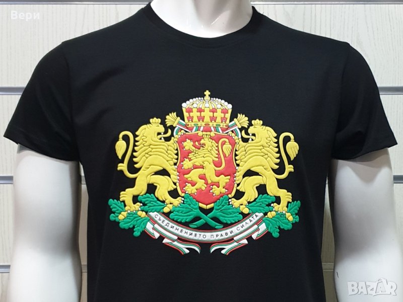 За ценителите на всичко българско и качествено представяме нашата страхотна мъжка тениска в черен цвят с релефен трансферен печат Герба на България и девиза "Съединението прави силата". Тениската е изработена в България под марката PRINTEX от висококачествен 100% пениран памук на 170 гр./м², който запазва цялостта на материята и наситеността на цветовете. С удобна кройка, тениската е свободна и позволява максимален комфорт при носене. Професионално изработен висококачествен трансферен печат с размер 27х23см, устойчив на пране с години. Тениската може да се пере при температура до 40 градуса. Спокойно можем да гарантираме за качеството на изработката и ярките цветове на дизайна.