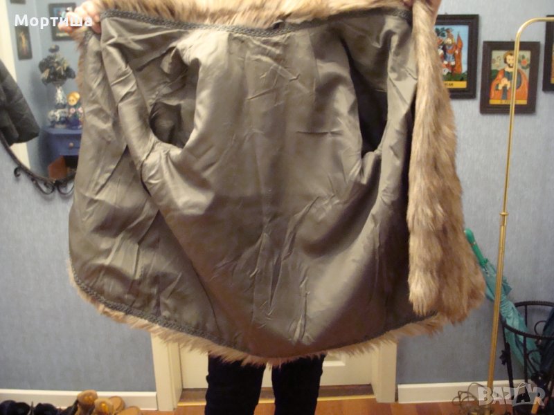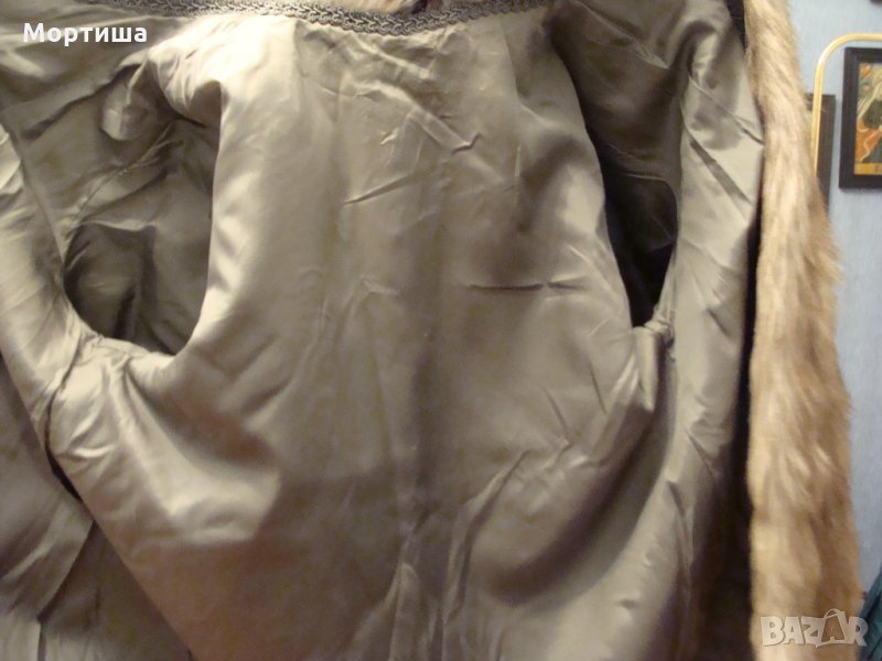 Луксозно палто от естествена кожа ракун Подарък ми е от Австрия Стой много тежкарско .Обличано е само веднъж но принципно не нося естествени кожи затова го продавам .Косъмът не се скубе .Размер Л дължина 76 см от мишница до под мишница отпред 60 см рамена 50 см Скрити джобове свободна но прецизна кройка удобно за ползване мека подплата сатенирана с красива ръчна бродерия по края