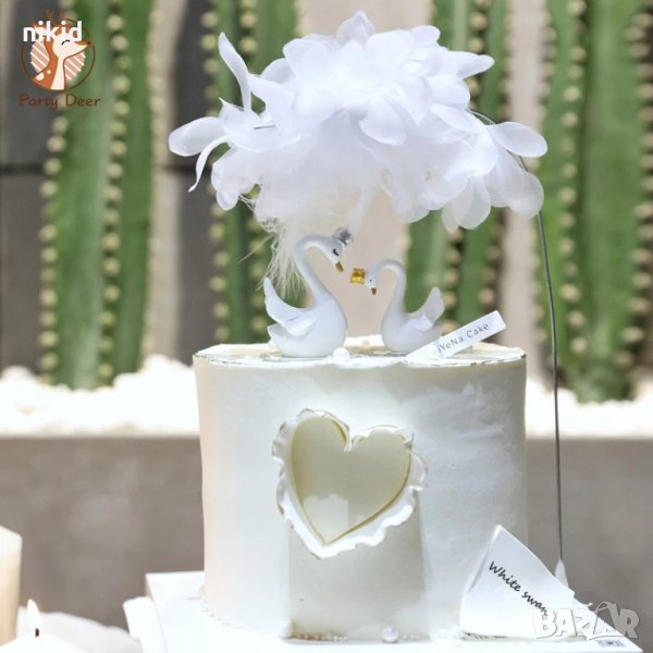 Двойка бели лебеди лебед фигурка фигурки от смола украса за торта и др фигурка лебед → Обява 28019107