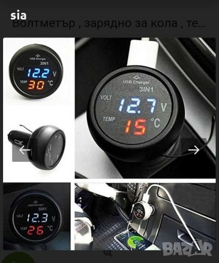 Термометър за кола VST-706. Също и USB зарядно за кола, уред три в едно. Следи за текущото напрежение на ел.мрежа на автомобила както и за температурата в купето и . Устройството има температурен датчик DS18B20.