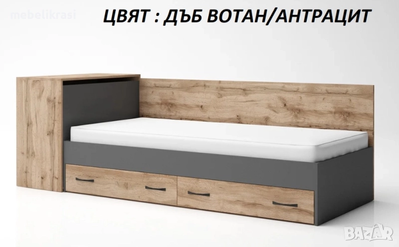 "Анди" е практично единично легло за матрак 120/190 см., оборудвано с: чекмеджета, ракла и странична табла. Леглото е подходящо за еднолицев и двулицев матрак, като за двулицевия матрак е нужно допълнително закупуване на подматрачна рамка.