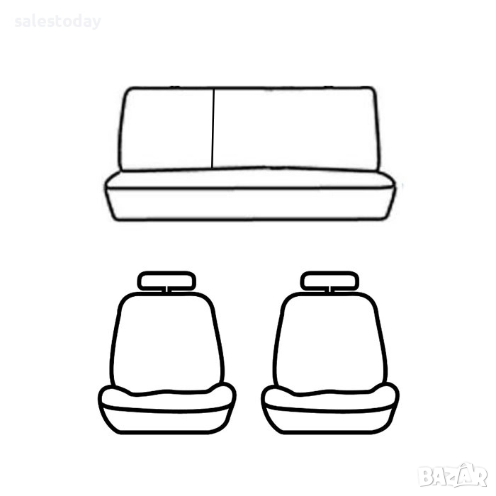 2 калъфа за предни седалки, 2 подглавници за предни седалките, 3 калъф за задна седалка.