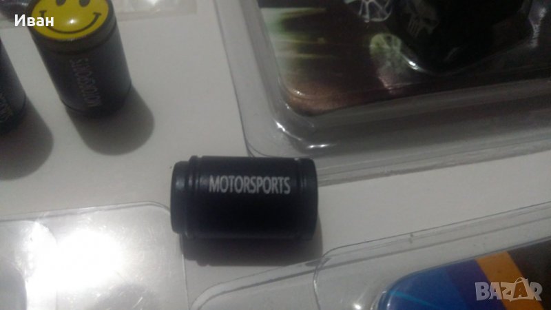 Трети модел високо качество капачки за вентили цвят черен с бели емблеми череп, гумени уплътнители във вътрешността на капачката и надпис Спортс ,,Sports и ,, Motorsports.