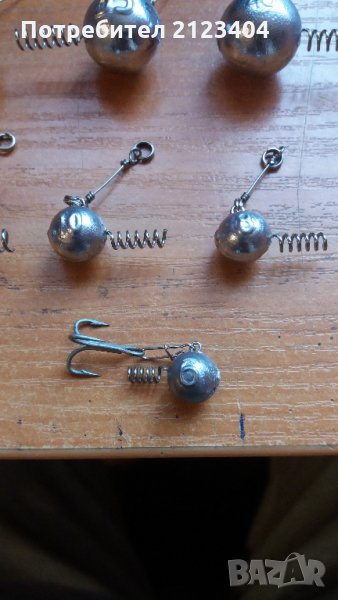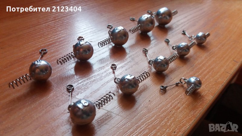 Нови по добре изработени джиг глави тип Турбошон,с подобрена спирала която варира от 3.5мм , 4мм и 5 мм външен диаметър.Тел и халки от неръждавейка.Възможност за прахово боядисване като цената на боядисаните е с 50 ст по висока,цветовете ги има на снимките.Налични са както стандартни турбошони с едно ухо и спирала така и такива с две уши за всякакви импровизации и монтажи като цената на тези с две уши е 30 ст нагоре.За хора със специални изисквания и хрумвания може да се импровизира с дължина на спиралата и тела за захващане на тройка.