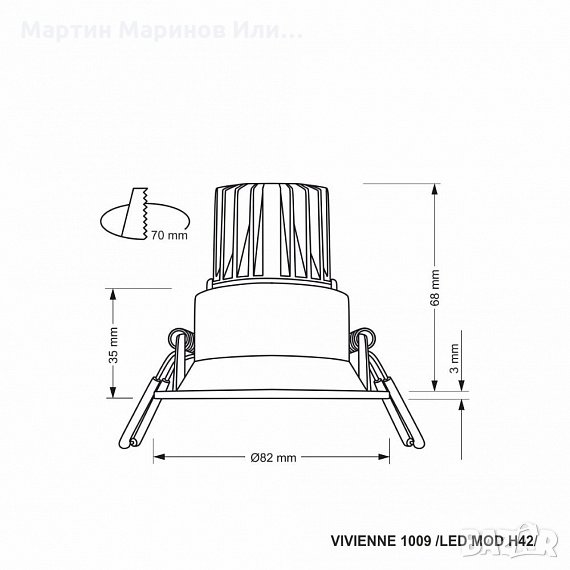 Монтажен отвор: Ø70мм