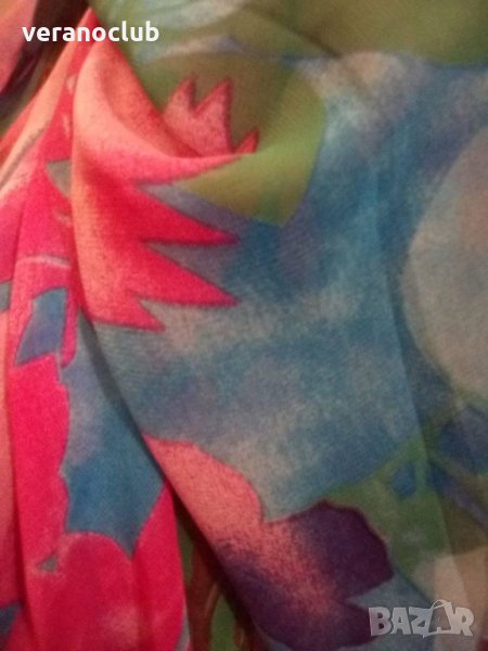Красив летен дамски шал - правоъгълен модел без ресни, богато обагрен. Подходящ за топлите дни, които с нетърпение очакваме. Удобен за плажа и при всяка разходка.