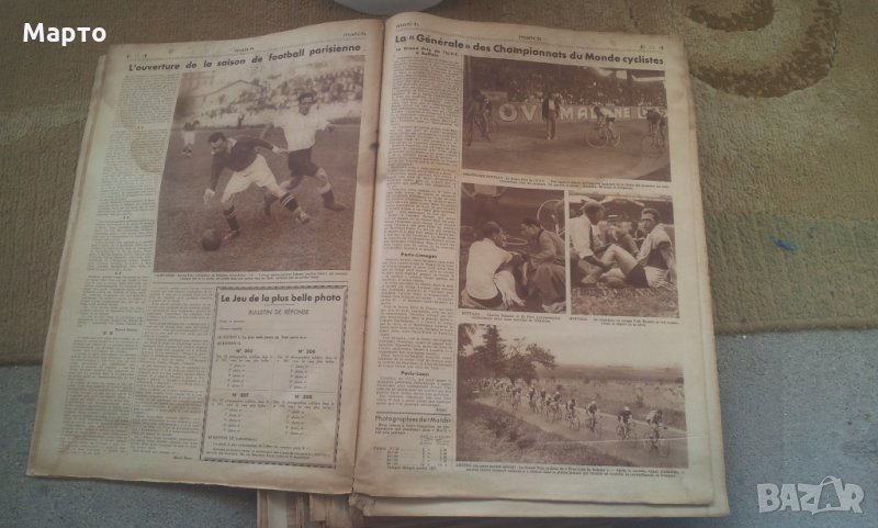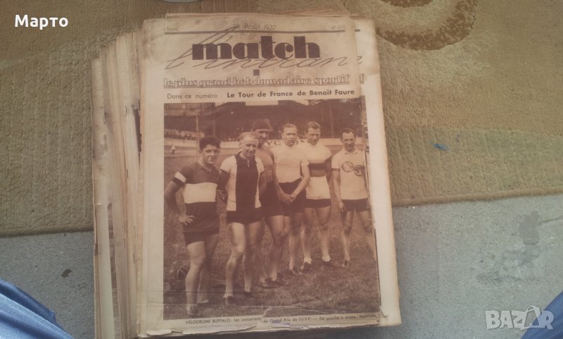 Моля да прочетете внимателно обясненията по обявата по-долу и тогава да задавате въпросите си!!! Щом обявата е активна, значи е налична и смело може да заръчвате директно ако си харесате нещо. Вестниците са много запазени, като се има в предвид, че са на по 90 години. Богата информация и снимков материал за спортните събития главно във Франция. Футбол, колоездене, ръгби, бокс, водна топка, плуване, гребане и т.н. Тур дьо Франс – обиколката на Франция колоездачи и автомобилното състезание. Невероятно попадение за колекция или пък за изключително оригинален и евтин подарък на френски приятел. Продават се поединично, по избор и всички накуп. Цена без избор, а който е наред за пращане – 8 лв, По избор от вас точен брой – 15 лв, цената ако се вземат всички е по 5 лв за брой. Имам 52 броя. Ето и какво има: 261–08.09.931 г, 262-15.09.1931 г,