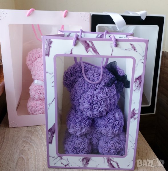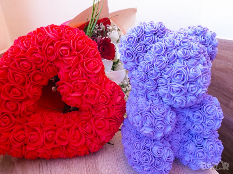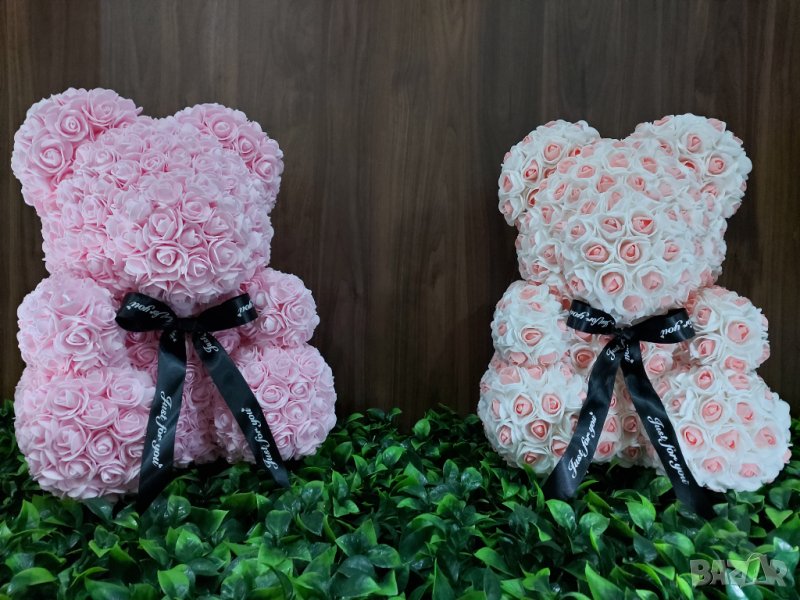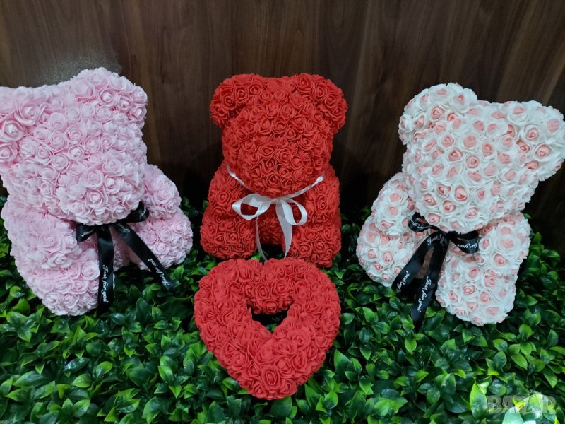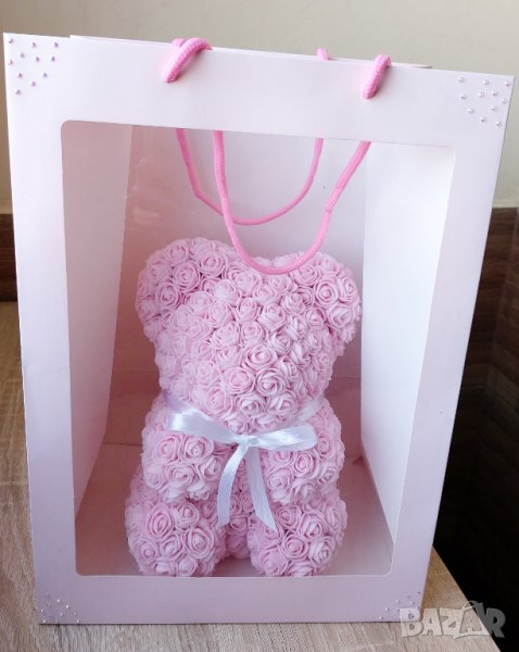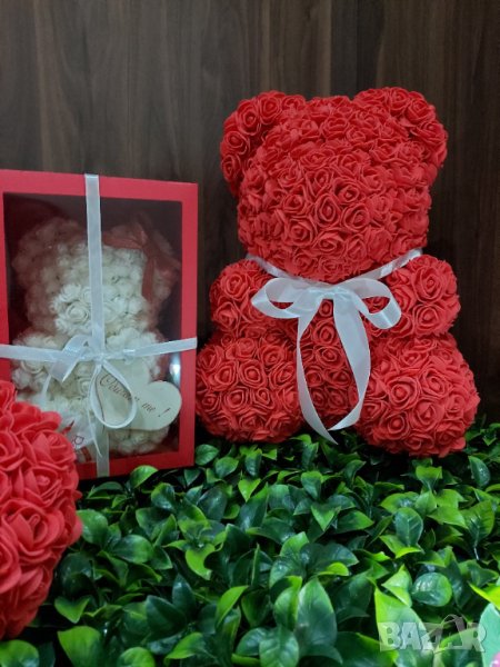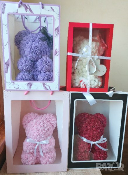 Мече от рози 40см. Изработено от над 1000 рози.Предлагаме и кутия към него.Цена на мечето-55лв.Цена на кутия-20лв.