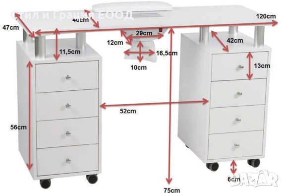 *Маса за маникюр с прахоуловител Distal 120 x 47 x 75,6 см