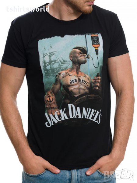 Нова мъжка тениска с дигитален печат Попай Моряка - Джак Даниелс