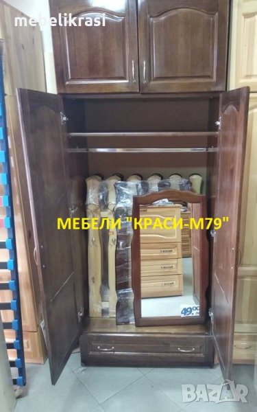 Гардероба е изработен от иглолистен масив-БОР в цвят орех.