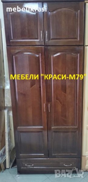 Гардероб 90 см. с надстройка .Масив в цвят орех. Наличен!
