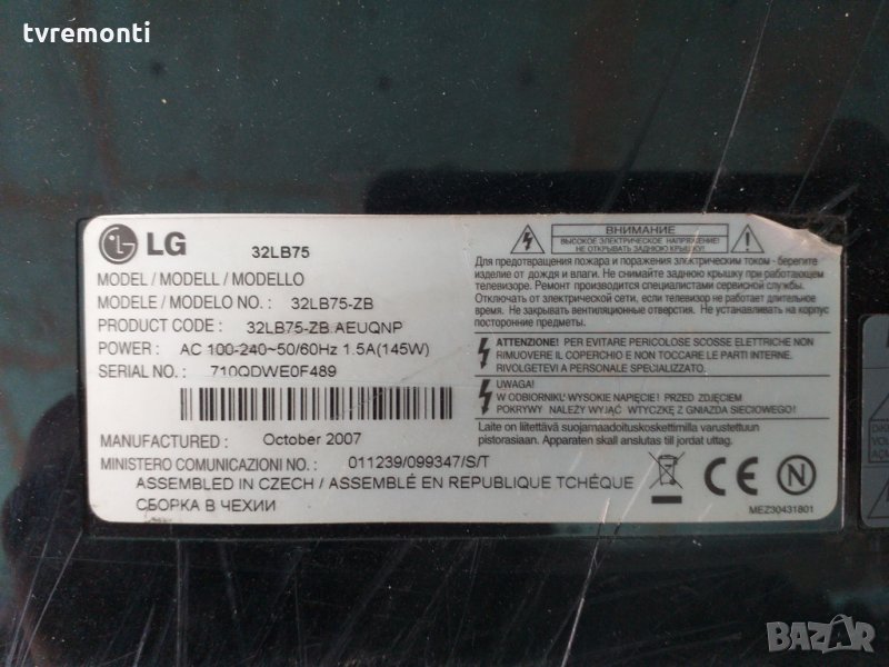 MAIN BOARD LG EBR40533401 EAX37632202 (0) EBR40533401 EAX37632202 (0) MAIN AV BOARD LG модел 32LB75 тесвана от нашия техник