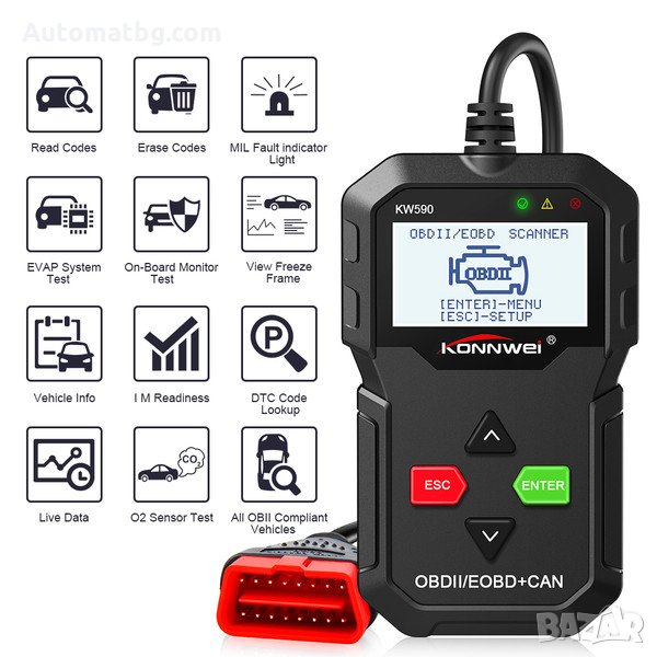 Уред за автомобилна диагностика Automat, Konnwei KW 590, OBD II