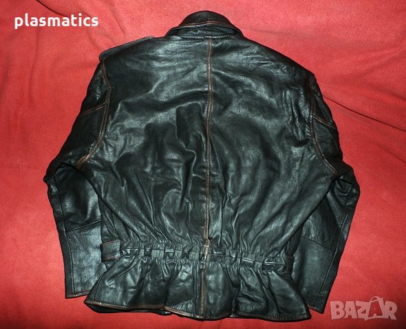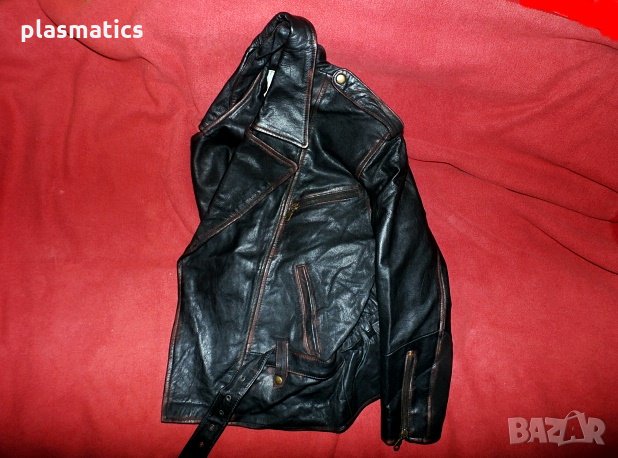 Марково стилно яке”On the Rocks”от естествена кожа с метални ципове и копчета, с шест джоба, от които два вътрешни. Дължина 64см, ширина 50см, ширина на раменете 48см, дължина на ръкава 55см, ширина на талията 48см, дължина на подмишницата 36см. Якето е в безупречен вид, хастарът е здрав, всички ципове работят.