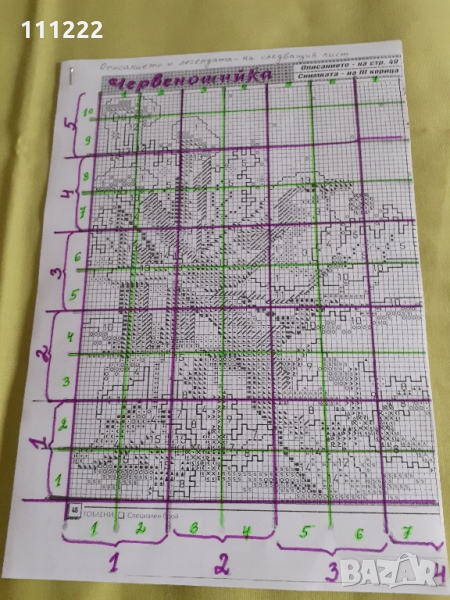 а) гоблен "Първа любов" - графика - схемата е разграфена на квадрати, които са номерирани по начин, удобен за шиене.
