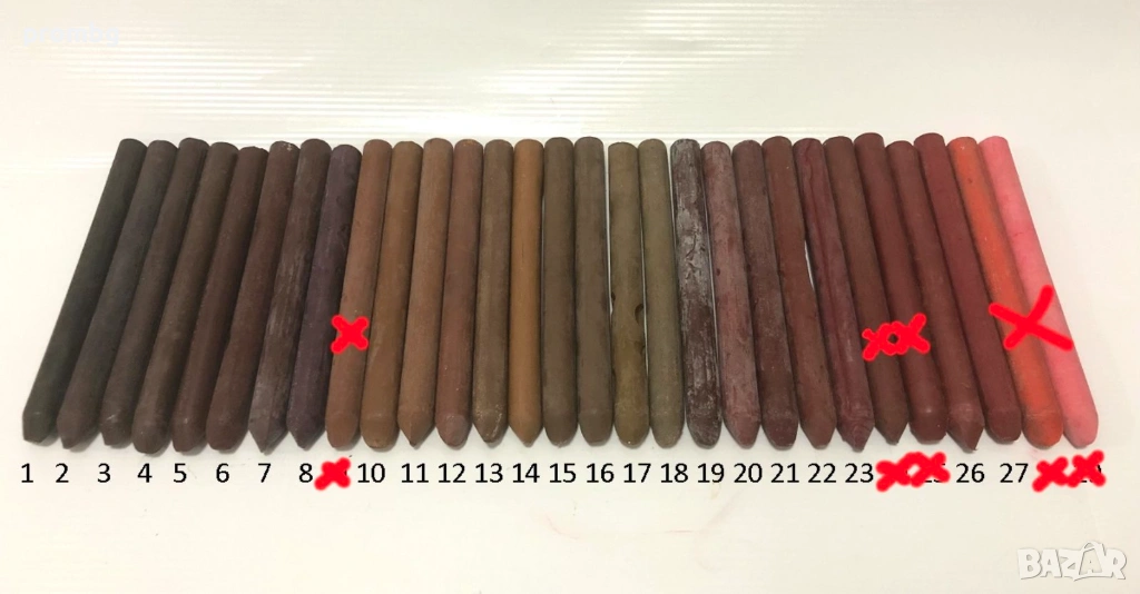 - Номера от 19 до 27 - червено-кафява гама