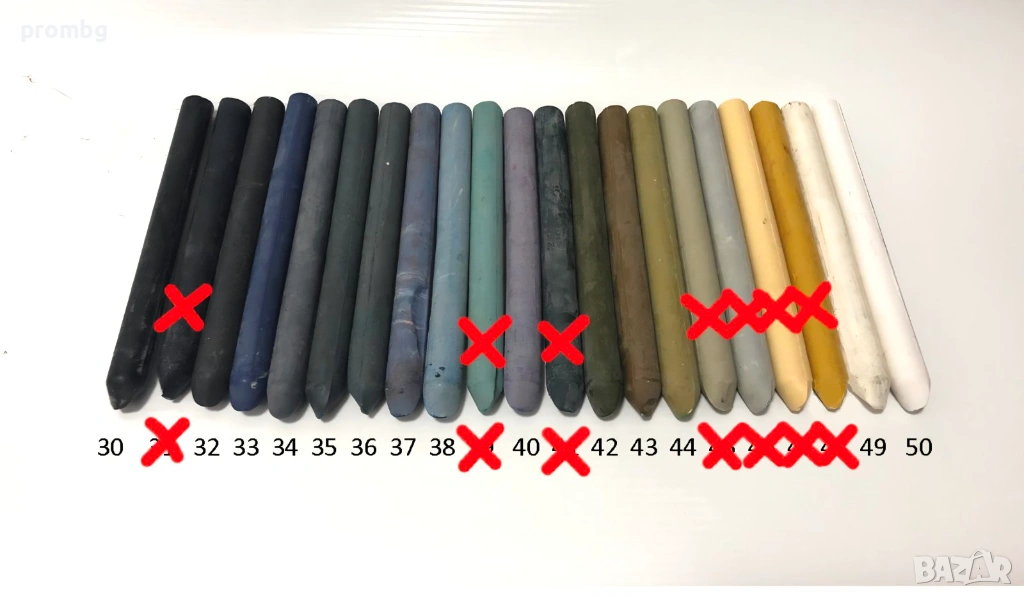 - Допълнително се предлагат ПАСТЕЛИ за кожа - използват се преди нанасяне на боята за запълване на фуги, дефекти, пукнатини, върху естествена и изкуствена кожа. Произведени са в Италия, с високо качество. Цена за 1 бр. пастел - 9 лв/4.60 евро.