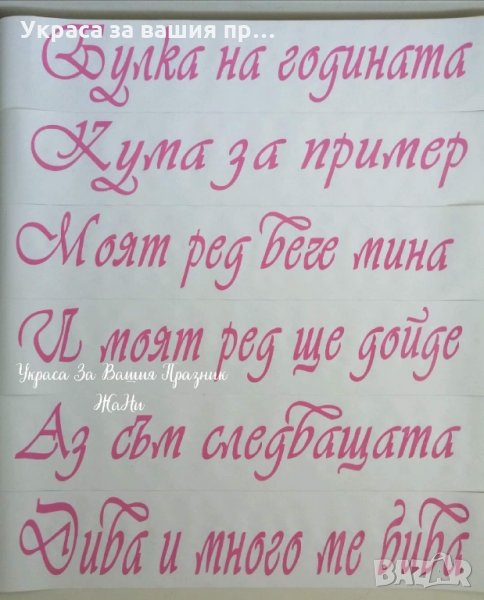 Ленти за моминско парти с текст по поръчка , снимка 1 - Сватбени аксесоари - 28091134 Ленти за моминско парти с текст по поръчка , снимка 2 - Сватбени аксесоари - 28091134 Ленти за моминско парти с текст по поръчка , снимка 3 - Сватбени аксесоари - 28091134 Ленти за моминско парти с текст по поръчка , снимка 4 - Сватбени аксесоари - 28091134 Ленти за моминско парти с текст по поръчка , снимка 5 - Сватбени аксесоари - 28091134 Ленти за моминско парти с текст по поръчка , снимка 6 - Сватбени аксесоари - 28091134 Ленти за моминско парти с текст по поръчка , снимка 7 - Сватбени аксесоари - 28091134 1/7