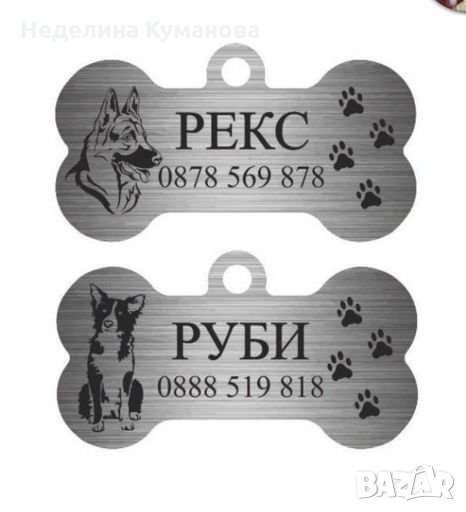🐾 Името на кучето и телефонния номер са лазерно изрязани, а породата е лазерно гравирана.