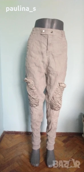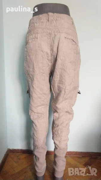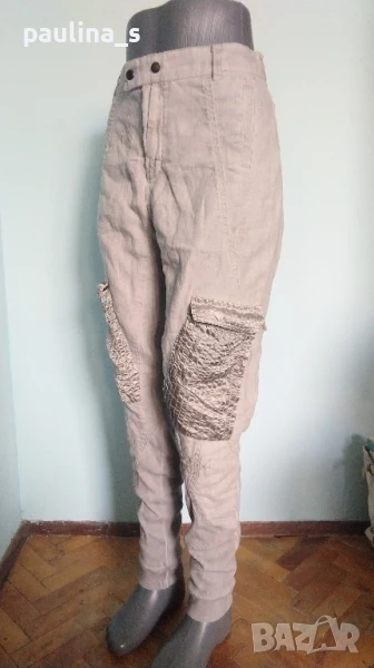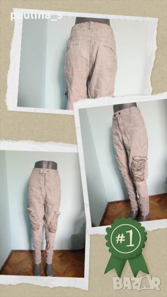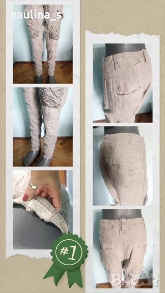 2️⃣. Колаж / L / 2XL - Ленени потури "NU by staff woman". Цената е крайна 49,99лв / 25 евро. Много атрактивни ленени потури с декорации от сатенени джобове, тегели и трико в долната част на крачолите. Уникална дреха, много скъпарска и с превъзходно качество. Моделът е сниман по детайлно и акуратно.