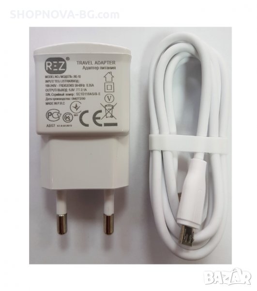 Оригинално зарядно REZ, модел RE-10 с Micro USB кабел, бял,