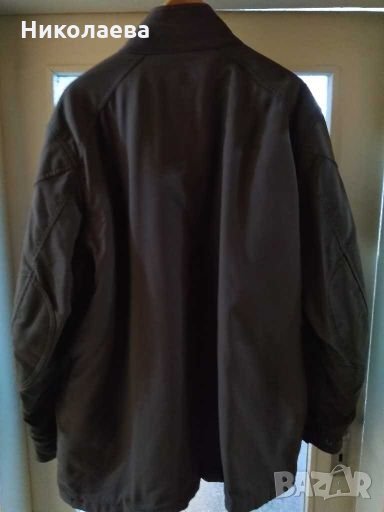 Мъжка шуба в кафяво-зелено,със средно дебело капитонирана подплата,с 4 външни джоба и 1 вътрешен,с прикачени гайки и допълнителен колан.С кадифе от вътрешната страна на яката-столче.Дължина от рамо 85 см,от мишница 53 см.Дължина ръкав 67 см.От рамо до рамо 54 см.От мишница до мишница 69 см,ширина в долния край 69 см(измерени отвън). Нова,без етикет.