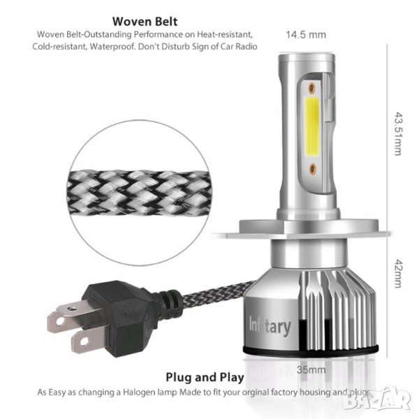 Лед крушки, лед доиди за фарове, led крушка H4, H3 H7,H11, H1, HB3, HB4🔝 INFITARY ®️ ✔️ 10000LM лед крушки за фарове H4 H3 H7 LED H11 H1 HB3 HB4 с High Quality Led chip♻️Нови специални характеристики на лед крушки фаровете за автомобил: