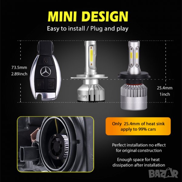 📈Използвайки High Quality Led chip (Високо качествени cob двойно по - големи от стандартните) чипове и специален дизайн, осигурете по-добър тип светлина, форма в линия и светлина на фаровете .
