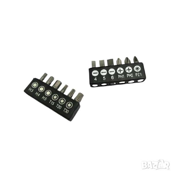 12 броя накрайници – разнообразни размери за бързо и ефективно справяне с различни винтове.