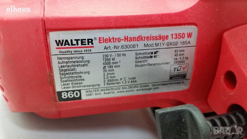 Ръчен циркуляр Walter M1Y-0X02-185A, снимка 1 - Други инструменти - 28120397 Ръчен циркуляр Walter M1Y-0X02-185A, снимка 2 - Други инструменти - 28120397 Ръчен циркуляр Walter M1Y-0X02-185A, снимка 3 - Други инструменти - 28120397 Ръчен циркуляр Walter M1Y-0X02-185A, снимка 4 - Други инструменти - 28120397 1/4