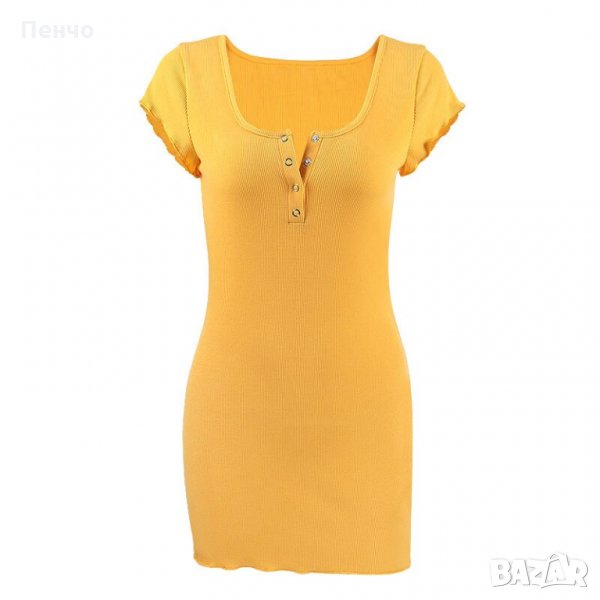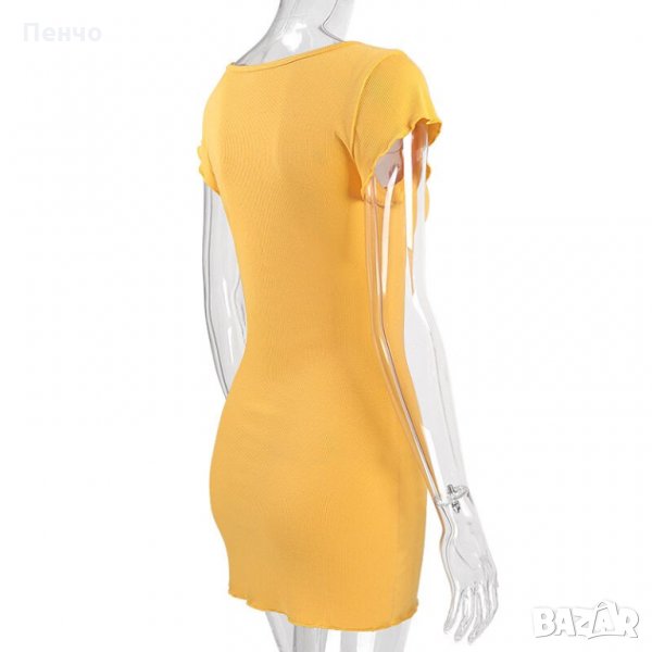 рокличка дрехи облекло деколте къс ръкав жълта мини лятна ежедневна рокля