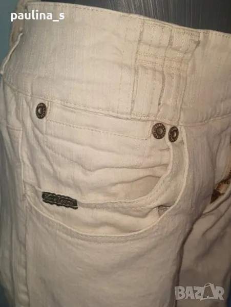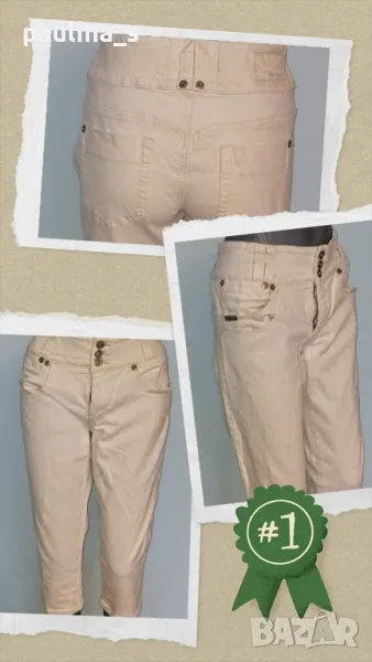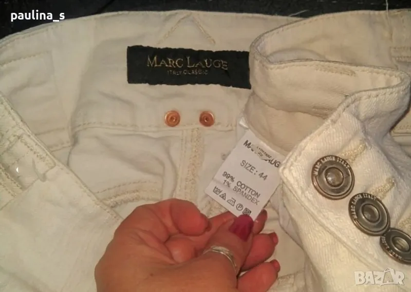 2️⃣ . Колаж / XL / 3XL - Дизайнерски еластични дънки "Marc Lauge" Italy. Цената е крайна 39,99лв / 20 евро. Дизайнерски дънкови бермуди с голяма еластичност. Моделът е "5 pocket Denim" с разчупени джобове и широка коланна платка, брандирани копче и кабси, бродирано лого. Цветът е Шампанско. Перфектни, една бройка, нови без етикет.