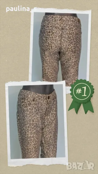 1️⃣ . Колаж / L / 2XL - "Jordache" skinny crop. Цената е крайна 49,99лв / 24,5 евро. Еластични дънкови бермуди в леопардов принт, с избелващ ефект, брандирани копче и кабси, емблема от естествена кожа. Моделът е "5 pocket Denim" под коляното. Нови са, без дефекти и етикет. Изумителна дреха.