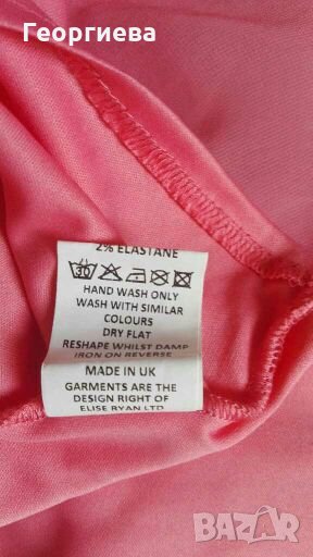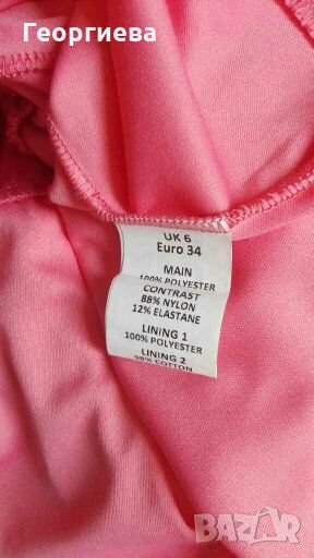 Мниго нежна рокличка с малък размер, подходяща за много елегантна дама, или млада госпожица.Цветът е кати на снимките - между розово и корал.Почти няма еластичност, с плътна подплата е, а бюстиети има подплънки и вертикални придържащи силиконови ленти.