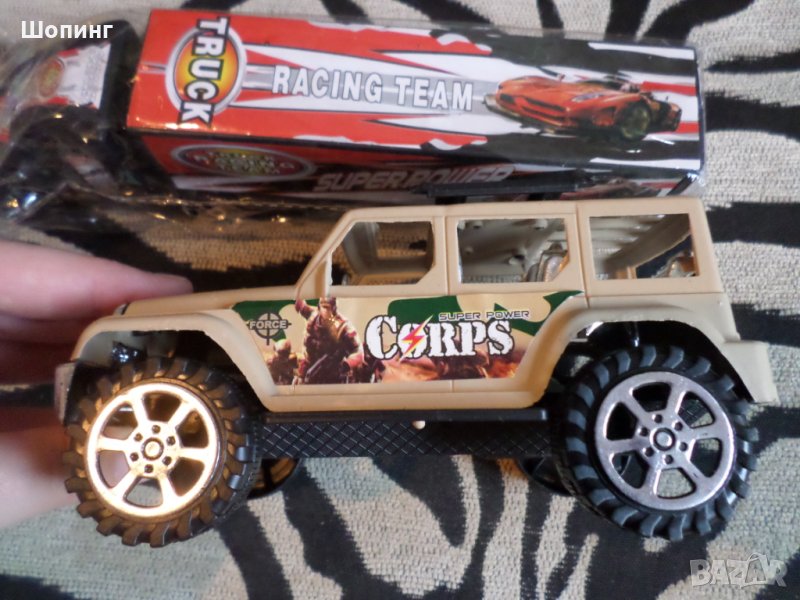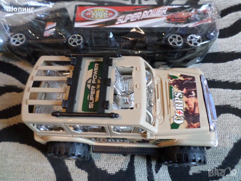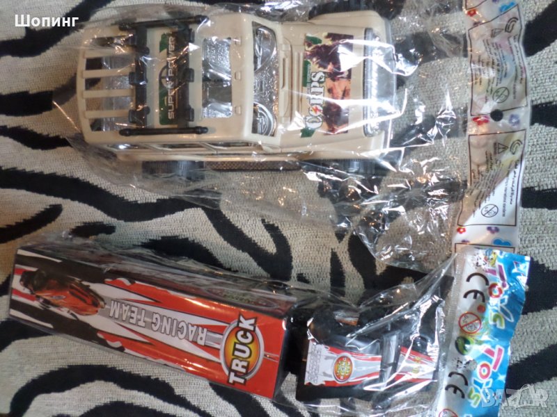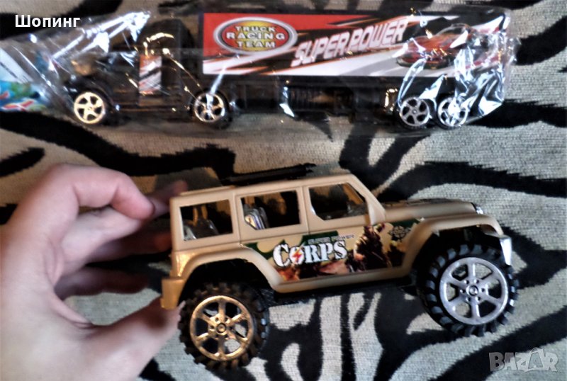 2. Комплект от два нови автомобила в опаковките. Джип (17 см) и дълъг камион - 24 см. И двата са 10 лв. общо.