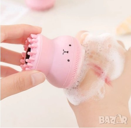 Сладка двустранна мека силиконова почистваща и масажираща четка гъба за миене на лице ръце тяло → Обява 28158350