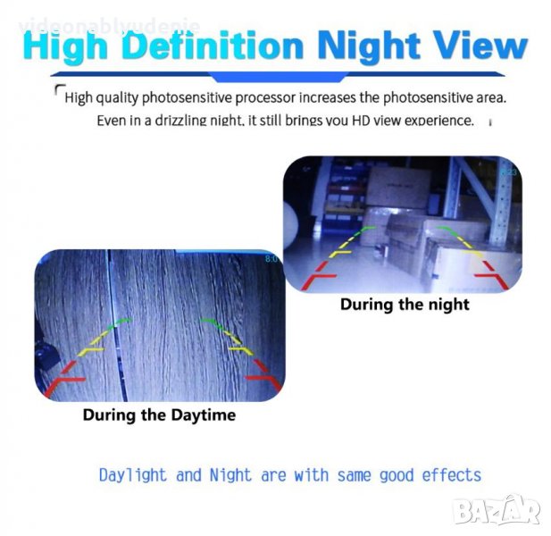 Камерата за задно виждане е с възможност за свързване с DVD плеър, GPS, сензор за паркиране, монитор с AV вход или към безжичен модул.