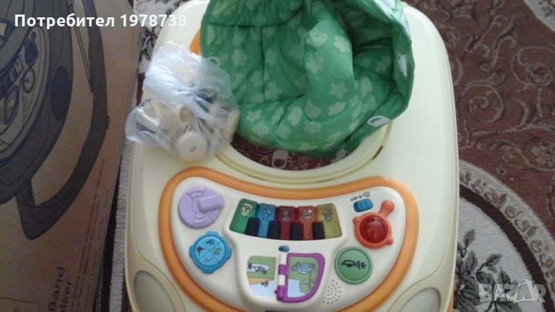 С регулиране на височината.Музикалната и стистема има дванадесет мелодий и пет вида звуци издавани от животни.Музикалното устройство може да се отделя и да се използва самостоятелно и след като проходи детето.Чехли джапанки нови по желание.