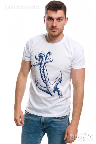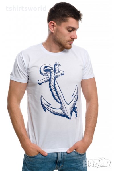 Нова мъжка тениска с трансферен печат Голяма котва, морска
